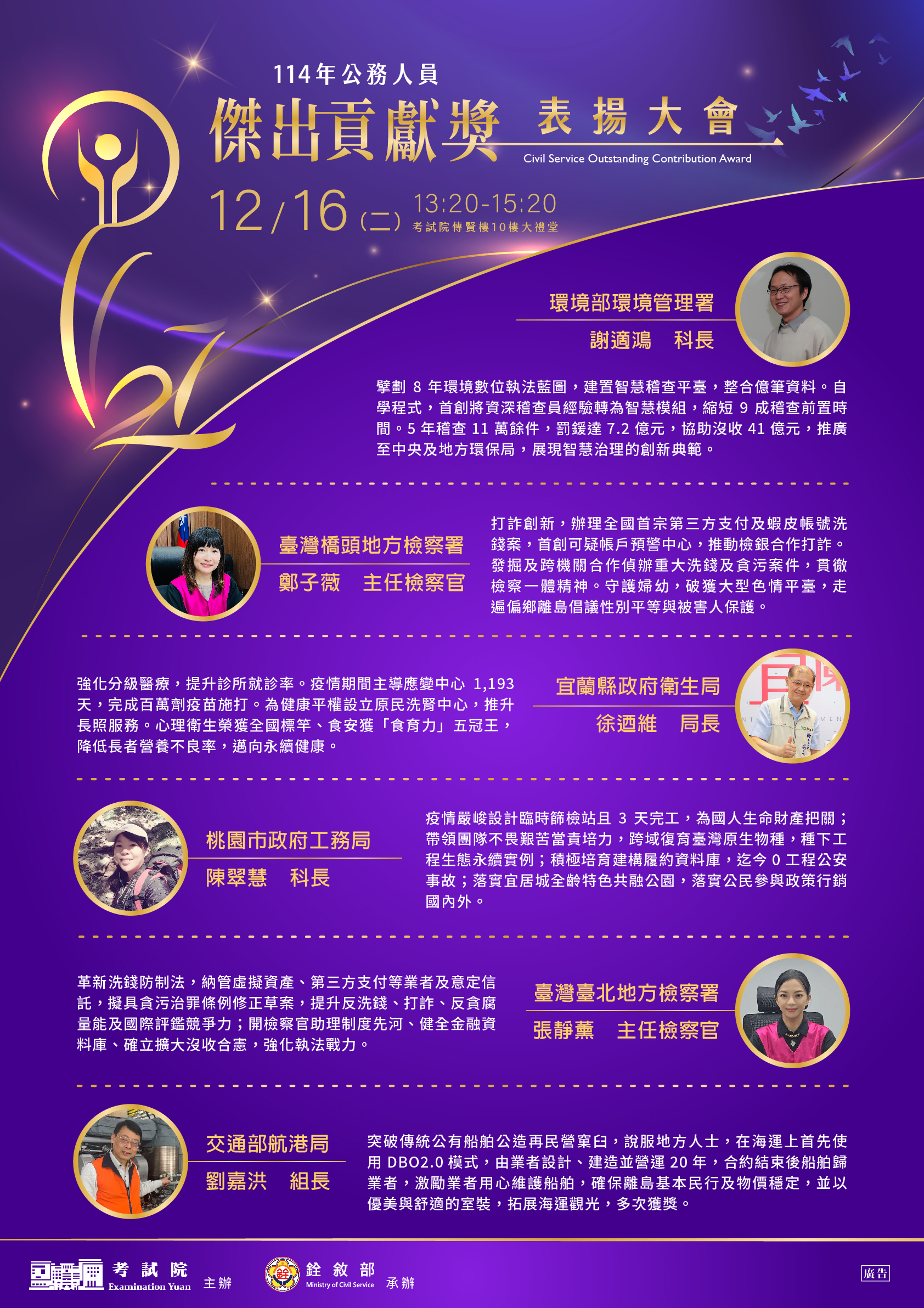 轉知「114年公務人員傑出貢獻獎表揚大會」電子海報