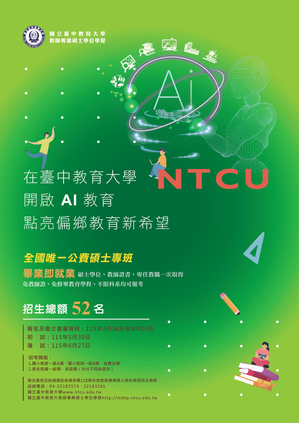 轉知國立臺中教育大學教師專業碩士學位學程115學年度招生海報